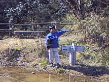 | 今日はおさるクンの8歳の誕生日です。ゆうこちゃんがバースデーケーキを焼いているあいだに、私(父)と散歩に行くことにしました。 ただの散歩ではつまらないので、誕生日の記念に三浦半島でも徒歩で横断してみようとひらめきました。なんの用意もしていませんでいた。でも、なんとかなるさを合言葉に、地図も持たないで、出発しました。ルールはありませんが、国道などの舗装路を使わずに、自然の中をあるくことにしました。 金沢海の公園を1時30分に出発しました。 |