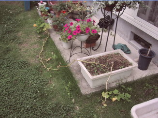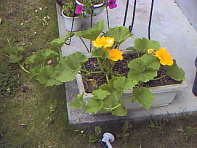 | こんなにのびました。ねもとのほうは、はっぱがどんどんかれてしまいました。 花は、おしべはいっぱいさくのに、めしべはさきそうになるとどんどんかれてしまいます。どうしてでしょう。かぼちゃはぜんぜんできません。 まきつくのをさがしてるのか、たまに動いたりします。 |