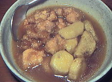 | 「揚げ煮」という調理法、ちょっと面倒に感じるかもしれません。でも、私はこの食べ方が、すっごく好きです。だしにこっくりとした風味が加わり、揚げ物にもだしのうまみがしみて、いくらでも食べられるという感じです。 |