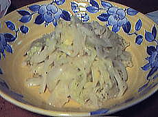 | 白菜のシンプルな味が楽しめます。おいしい塩と挽きたてのこしょうがあれば、ほんとにおいしくなります。最初に蒸し煮にするのは、炒めている時に水っぽくなるのをふせぐため。こうすると、火は通っているのにシャキッとした白菜が食べられます。 |