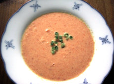 【材料】人参 2本 完熟トマト 中2個 玉ねぎ 1個 バター 大さじ2 固形ブイヨンの素 1個 水 3カップ 牛乳 1カップ 生クリーム 1/2カップ 塩・こしょう 適宜 |