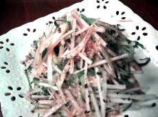 ドレッシング { わさび 大さじ1/2、だし汁・サラダ油 各大さじ2、 酢・酒 各大さじ1、 薄口しょうゆ 大さじ3 }