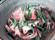 - 牛肉は、細切りにして下味をもみこむようにして、漬ける。