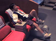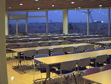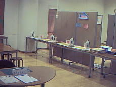 | 直接展示品ではありませんが、屋上から海側を覗くと、工事ではがしたアスファルトの道路をリサイクルしており、実際の社会でリサイクルが行われているのがわかります。子供も、大型重機が動いているので興味をもってみています。 左の写真は休憩室です。こんなに広くてきれいなのにだれもいません。いるのは、受験勉強をしている学生さんだけです。図書館に並ぶより、ずっとかしこい。勉強には最適な環境! |